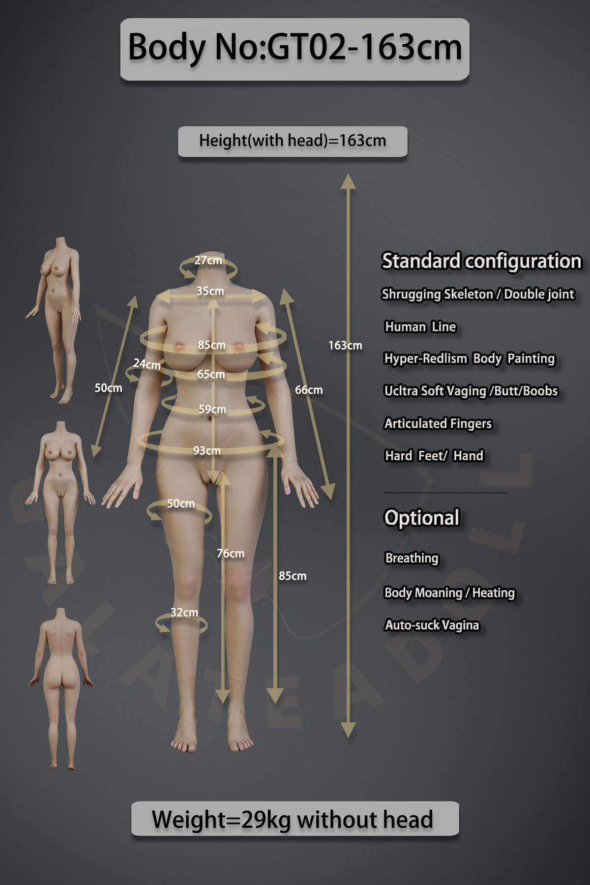Die Werbefotos wurden mit einer Sexpuppe gemacht, die genauso gut und echt aussieht wie die, die du haben kannst. Der Fotograf hat das Beste aus Make-up, Inszenierung und anpassbaren Optionen gemacht, damit alles so echt wie möglich aussieht. Er hat auch professionelle Fototechniken und Beleuchtung verwendet.